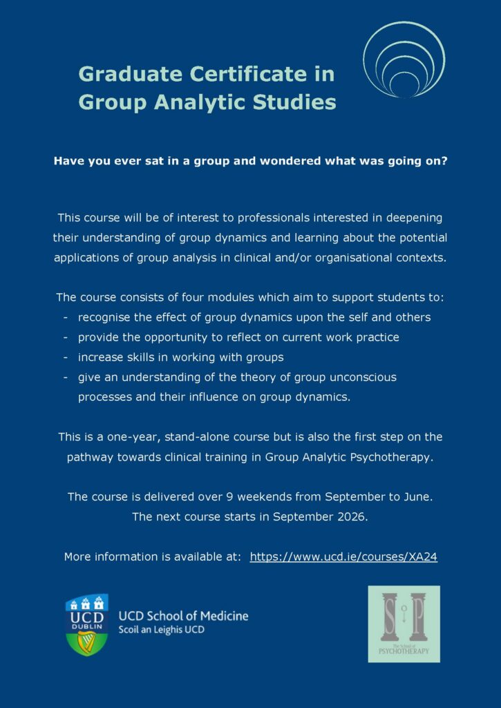 This is a one-year, stand-alone course but is also the first step on the pathway towards clinical training in Group Analytic Psychotherapy.